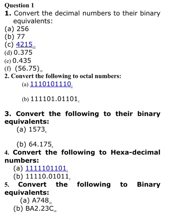 Solved: Question 1 1. Convert The Decimal Numbers To Their ...